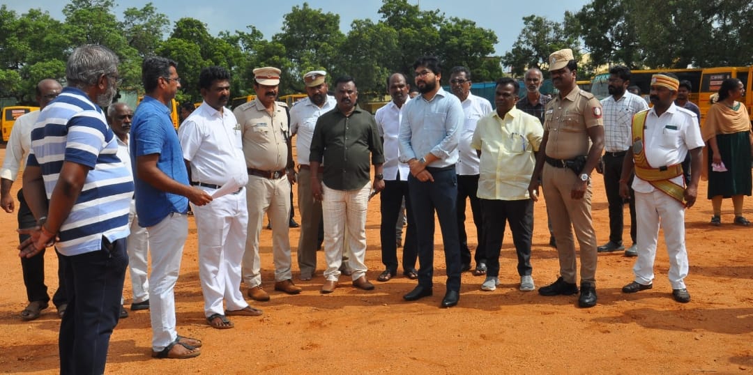 அதன்படி, 4-ஆவது புத்தகத் திருவிழா நடைபெற உள்ள நாடார் சரஸ்வதி ஆண்கள் மேல்நிலைப்பள்ளி மைதானத்தில் புத்தக அரங்குகள், நுழைவாயில் மற்றும் மேடை அமைப்பதற்கான இடம், தீயணைப்பு வாகனம் தயார் நிலையில் நிற்பதற்கான இடம், சிறுவர்களுக்கான பொழுதுபோக்கு இடம் அமைத்தல், உணவுப்பொருள் விற்பனை கூடங்கள், மகளிர் சுய உதவிக்குழுக்களின் உற்பத்தி பொருட்கள் அரங்குகள், கண்காட்சிகள், தற்காலிக கழிவறை மற்றும் பொதுமக்கள் வாகனங்கள் நிறுத்துவதற்கு தேர்வு செய்யப்பட்டுள்ள இடம் போதுமானதாக உள்ளதா என மாவட்ட ஆட்சித்தலைவர் நேரில் பார்வையிட்டு ஆய்வு மேற்கொண்டார்.