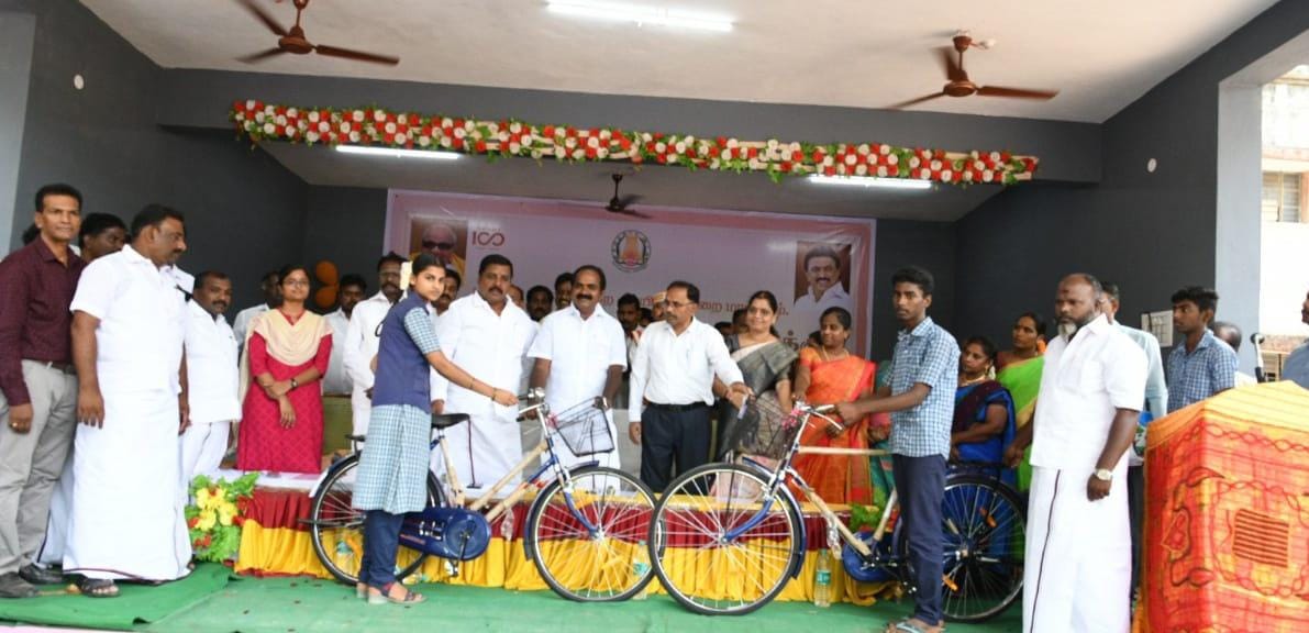 மயிலாடுதுறை மாவட்டம் குத்தாலம் வட்டம் கோமல் அரசு மேல்நிலைப் பள்ளியில் அரசு பள்ளி மாணவ, மாணவியர்களுக்கு மிதிவண்டிகளை சுற்றுச்சூழல் மற்றும் காலநிலை மாற்றத்துறை அமைச்சர் சிவ.வீ.மெய்யநாதன் வழங்கினார். உடன் மாவட்ட ஆட்சியர் ஏ.பி.மகாபாரதி, பூம்புகார் சட்டமன்ற உறுப்பினர் நிவேதா எம்.முருகன், சீர்காழி சட்டமன்ற உறுப்பினர் எம்.பன்னீர்செல்வம், மாவட்ட ஊராட்சிக்குழு தலைவர் உமாமகேஸ்வரி சங்கர், வருவாய் கோட்டாட்சியர் வ.யுரேகா, முதன்மை கல்வி அலுவலர் அ.ரேணுகா, குத்தாலம் ஒன்றியக்குழு தலைவர் மகேந்திரன் உடன் இருந்தனர்.
