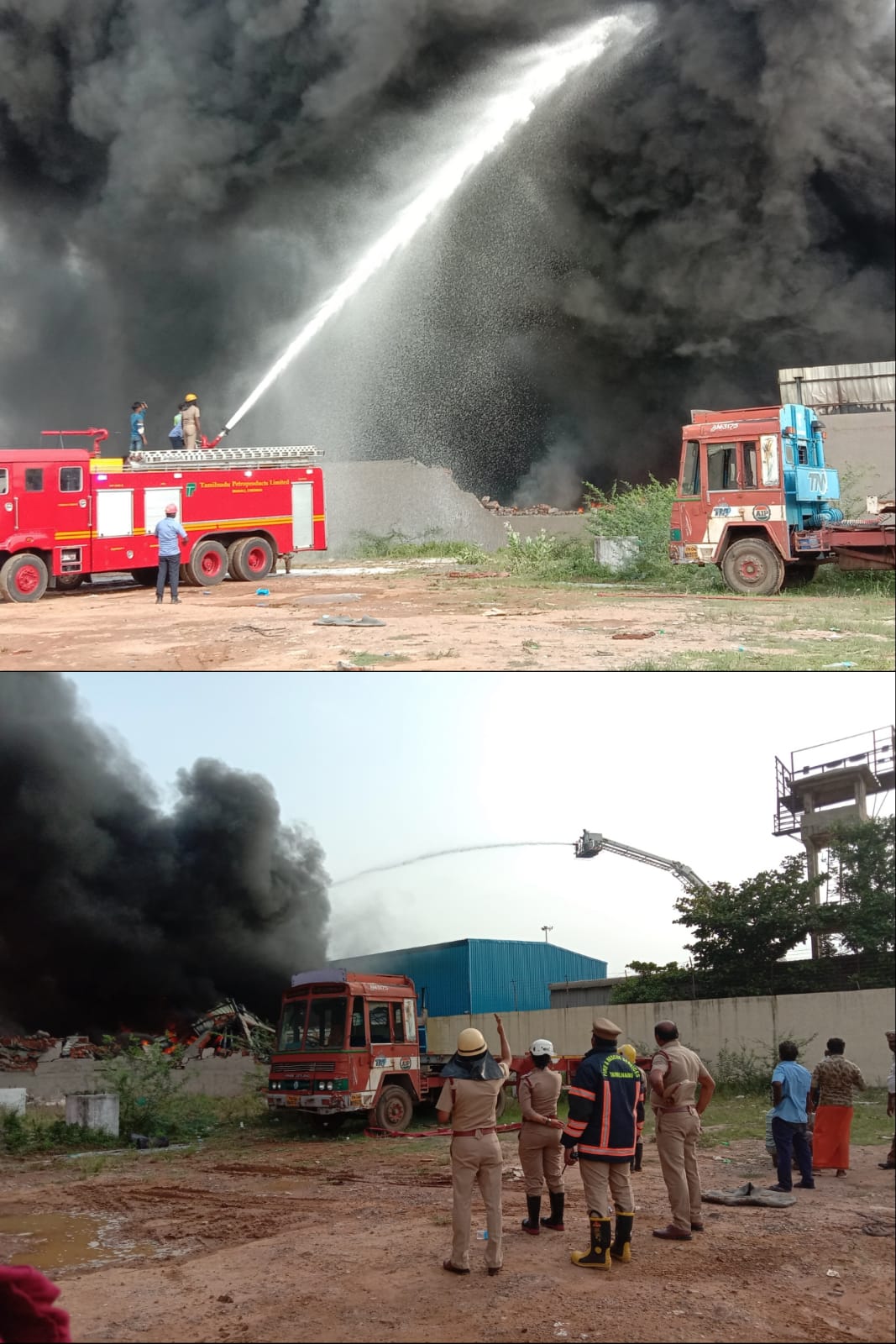 சம்பவ இடத்திற்கு மணலி அம்பத்தூர் ஆவடி செங்குன்றம் உள்ளிட்ட தீயணைப்பு நிலையில் இருந்து சுமார் 8 தீயணைப்பு வாகனங்கள் 50க்கும் மேற்பட்ட தீயணைப்பு வீரர்கள் தீனை கட்டுப்படுத்த போராடி வந்தனர்