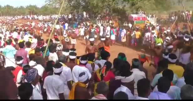 மணப்பாறை அருகே ராஜகோடாங்கிபட்டியில் எருது ஓட்டம் என்னும் மாலை தாண்டும் திருவிழா.