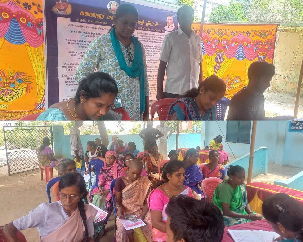 திருவள்ளூர் மாவட்டம் பொன் னேரி தாலுக்கா சோழவரம் ஊரா ட்சி ஒன்றியத்திற்கு உட்பட்டது பஞ்செட்டி ஊராட்சி இந்த ஊரா ட்சிக்குட்பட்ட தச்சூர் பகுதியில் உள்ள அரசு நடுநிலைப் பள்ளியில் தமிழக அரசின் கலைஞர் மகளிர் உரிமை திட்டத்திற்கான பெயர் சேர்க்கும் முகாம் நடைபெற்றது.