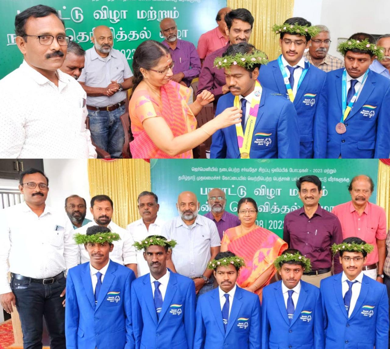 ஜெர்மெனியில் உள்ள பெர்லின் நகரில் நடைபெற்ற சர்வதேச சிறப்பு ஒலிம்பிக்ஸ் விளையாட்டு போட்டி மற்றும் முதலமைச்சர் கோப்பைக்கான விளையாட்டுப் போட்டிகளில் பங்கேற்று வெற்றி பெற்ற மதுரை பெத்சான் சிறப்பு பள்ளி மாணவர்களுக்கு பாராட்டு விழா நடைபெற்றது.