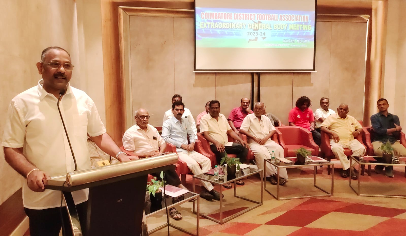 கோவை மாவட்ட கால்பந்து சங்கத்தின் பொதுக்குழு கூட்டம் கோவை அவினாசி சாலையில் உள்ள தனியார் ஓட்டலில் நடைபெற்றது..இதில் புதிய அஜித்குமார் லால் மற்றும் நிர்வாகிகள் தேர்வு செய்யப்பட்டனர்.