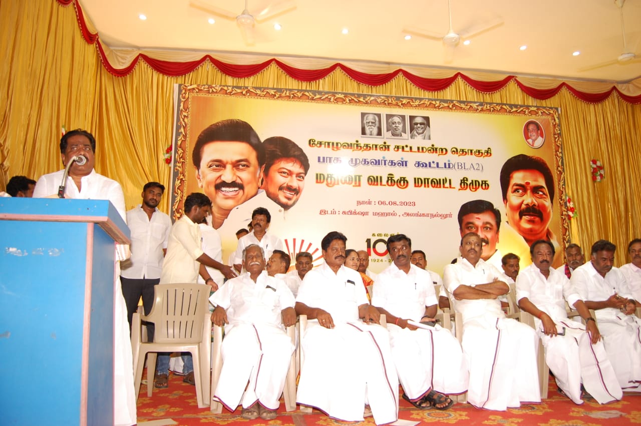 மதுரை மாவட்டம் அலங்காநல்லூர் தனியார் மண்டபத்தில் சோழவந்தான் சட்டமன்ற தொகுதி வாக்குச்சாவடி பாக முகவர்கள் கூட்டம் நடைபெற்றது. வணிகவரி மற்றும் பதிவுத்துறை அமைச்சர் பி.மூர்த்தி, கலந்து கொண்டு முகவர்கள் முன்னிலையில் சிறப்புரையாற்றி பல்வேறு ஆலோசனைகளை வழங்கினார்.