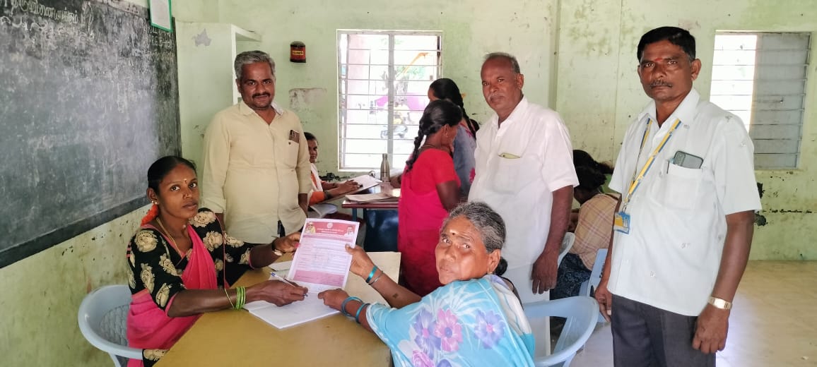 பொறுப்பு அலுவலர் வட்டாட்சியாளர் கிராம நிர்வாக அலுவலர் தலைமையில் முகாம் நடைபெற்றது கலைஞரின் உரிமை தொகை பெறுவதற்கு படிவம் வீடு வீடாக ரேஷன் கடையில் சேல்ஸ்மேன் மூலம் வழங்கப்பட்டது