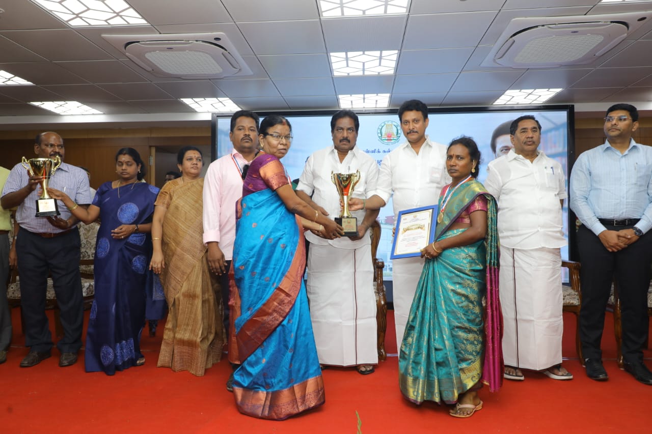 மதுரை கலைஞர் நூற்றாண்டு கூட்ட அரங்கில் பள்ளிக்கல்வித்துறை அமைச்சர் அன்பில் மகேஷ் பொய்யாமொழி தலைமையில் பள்ளி சாரா இயக்கம் சார்பில் நடைபெற்ற புதிய பாரத எழுத்தறிவு திட்ட மாநில எழுத்தறிவு விருது வழங்கும் விழாவில் கடந்த ஆண்டில் பள்ளி சாரா கல்வி இயக்கத்தின் சார்பில் 2022-23 ல் புதிய பாரத எழுத்தறிவு திட்ட மையம் சுந்தரவிளகத்தில் சிறப்பாகவும் முன்மாதிரியாகவும் செயல்பட்டமைக்காக திருவாரூர் ஒன்றியத்தைச் சேர்ந்த சுந்தரவி ளாகம் பள்ளி தலைமை ஆசிரியர், பள்ளி ஆசிரிய பயிற்றுநர் ,மைய தன்னார்வலர் ஆகியோருக்கு பள்ளிக்கல்வித்துறை அமைச்சர் அன்பில் மகேஷ் பொய்யாமொழி மற்றும் வணிகவரித்துறை அமைச்சர் மூர்த்தியும் மாநில எழுத்தறிவு விருதும், பதக்கம் மற்றும் பாராட்டு சான்றிதழும் வழங்கி கௌரவித்தார்கள்.
