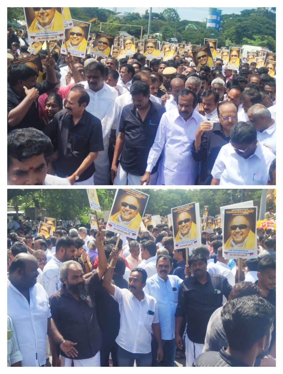கோவை மாவட்டம் கோவையில் டாக்டர் கலைஞர் கருணாநிதியின் 5 வது ஆண்டு நினைவு தினத்தை முன்னிட்டு மது விலக்கு மற்றும் ஆயத்தீர்வுத்துறை அமைச்சர் முத்துசாமி மற்றும் ஒருங்கிணைந்த கோவை மாவட்ட செயலாளர்கள் தலைமையில் அமைதிப் பேரணி நடைபெற்றது