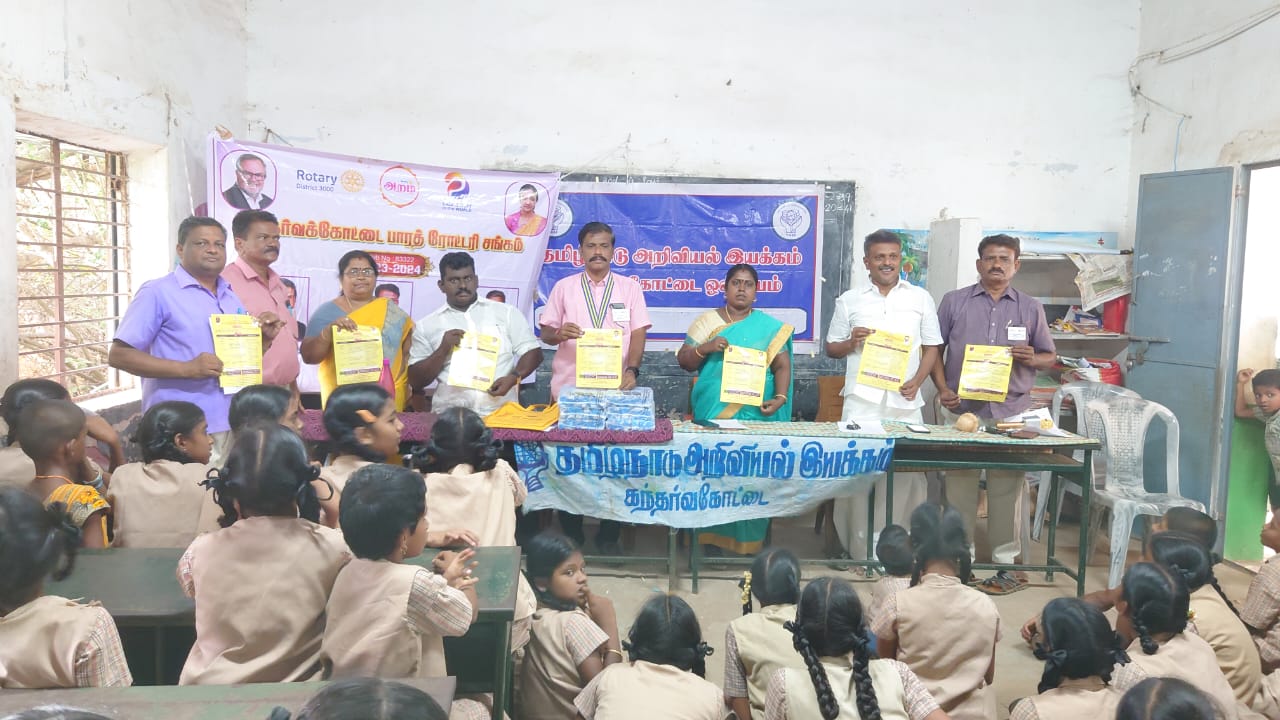 இந்நிகழ்விற்கு பாரத் ரோட்டரி சங்க தலைவர் தேவநாதன் தலைமை வகித்தார். வட்டாரக் கல்வி அலுவலர் வெங்கடேஸ்வரி முன்னிலை வகித்தார். கந்தர்வகோட்டை நடுநிலைப்பள்ளி தலைமையாசிரியர் விஜயலட்சுமி அனைவரையும் வரவேற்றார்.