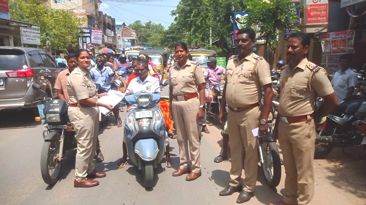 கபிஸ்தலம் காவல் நிலைய ஆய்வாளர் மகாலட்சுமி, சப் இன்ஸ்பெக்டர்கள் குமார்,கோவிந்தராஜ் மற்றும் போலீசார் துண்டு பிரசுரம் வழங்கி விழிப்புணர்வு ஏற்படுத்தினர்.