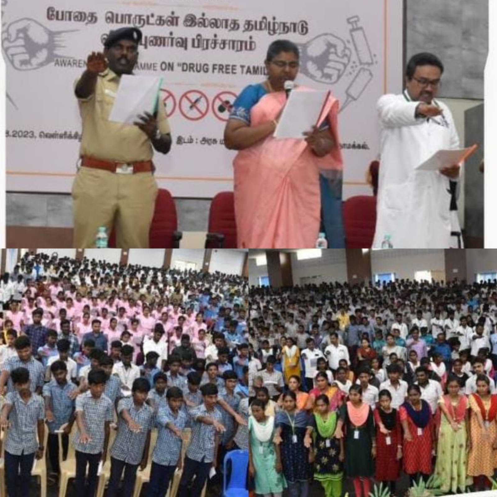 நாமக்கல் மாவட்ட ஆட்சித்தலைவர் டாக்டர் ச. உமா தலைமையில், நாமக்கல் அரசு மருத்துவக் கல்லூரி கலையரங்கில், போதை பழக்கத்திற்கு எதிரான உறுதிமொழி ஏற்பு நிகழ்ச்சி நடைபெற்றது