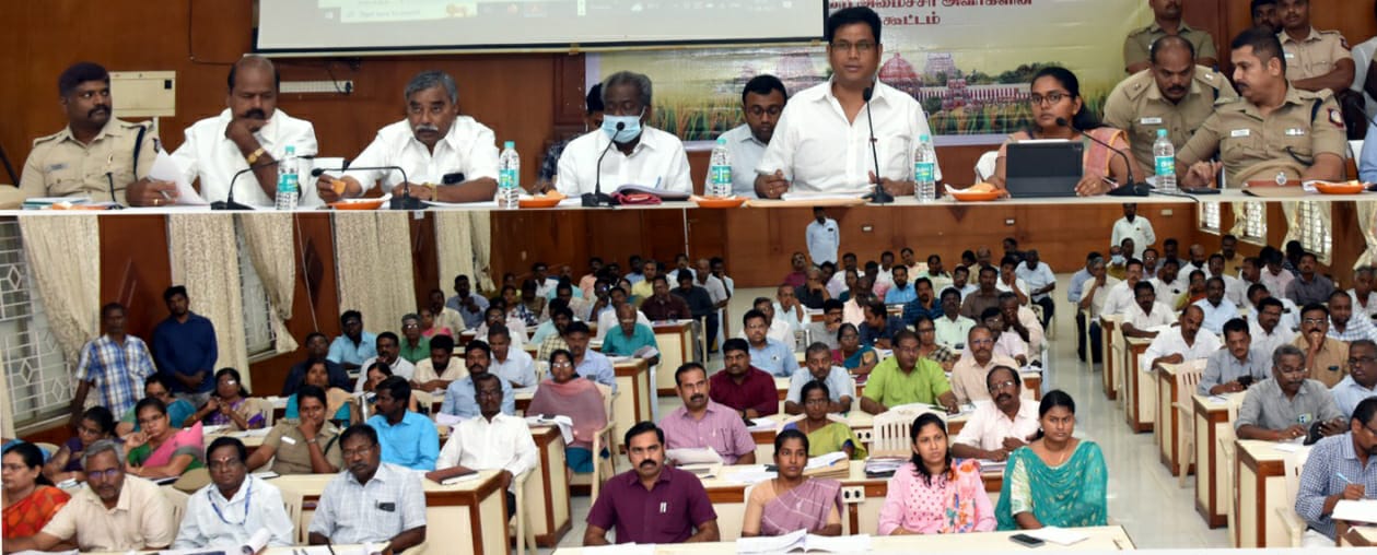 தமிழ்நாடு முதலமைச்சர் உத்தரவிற்கிணங்க அனைத்துறை அலவலர்களுடான ஆய்வுக்கூட்டம் நடைபெற்றது திருவாரூர் மாவட்டத்தில் நடைபெற்று வரும் சீரிய திட்டங்களான வேளாண்மை மற்றும் உழவர் நலத்துறையின் கலைஞர் அனைத்து கிராம ஒருங்கிணைந்த வேளாண் வளர்ச்சி திட்டம் இ-வாடகை குறித்தும் ஊரக வளர்ச்சித்துறையின் சார்பில் அனைத்து கிராம அண்ணா மறுமலர்ச்சி திட்டம் உதவிக்குழுக்களுக்கு வங்கிக்கடன் இணைப்பு, தீனதயாள் உபாத்யா கிராமின் கௌசல்யா திட்டம் குடிநீர் விநியோகம் ஊரகம் உள்ளிட்ட திட்டங்கள் குறித்தும் நகராட்சி நிர்வாகம் மற்றும் குடிநீர் வழங்கல்துறையின் சார்பில் கலைஞர் நகர்புற மேம்பாட்டு திட்டம் நமக்கு நாமே திட்டம் ஜல் ஜீவன் மிஷன் திட்டம் குறித்தும வருவாய் மற்றும் பேரிடர் மேலாண்மைதுறையின் கீழ் இயங்கும் தமிழ்நாடு அரசின் இ-சேவை மையம், பள்ளி கல்வித்துறையின் எண்ணும், எழுத்தும் இயக்கம் பள்ளி உட்கட்டமைப்பு அரசு பள்ளிகளின் தேர்ச்சி விகிதம் சிறப்பு திட்ட செயலாக்களான நான் முதல்வன் திட்டம் முதலமைச்சரின் சிறப்பு திட்டாக்கப் பணிகள் செயல்பாடுகள் குறித்தும், சமூக நலன் மற்றும் மகளிர் உரிமைத்துறையின் சார்பில் முதலமைச்சரின் காலை உணவுத்திட்டம், ஒருங்கிணைந்த குழந்தை வளர்ச்சித் திட்டப்பணிகள் அங்கான்வாடிகள் புதுமை பெண் திட்டம் குறித்தும் மருத்துவத்துறையின் மக்களை தேடி மருத்துவம் குறித்தும், முதல்வரின் முகவரி திட்டம் உள்ளிட்ட திட்டங்களின் செயல்பாடுகள் முன்னேற்றம் குறித்து ஆய்வு செய்யப்பட்டுள்ளது