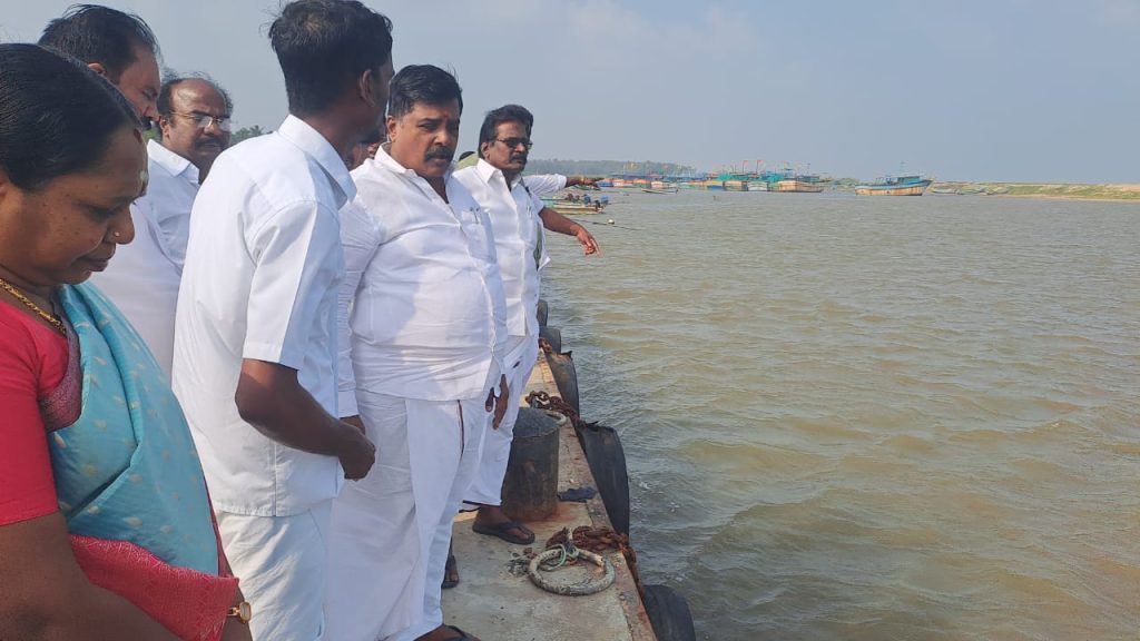 மேலும் அப்பகுதி மீனவர்கள் மாவட்டச் செயலாளரிடம் துறைமுக முக துவாரம் தூர் வார வேண்டும் என கோரிக்கையை வைத்தனர் அதன்படி நேரில் சென்று ஆய்வு செய்து அதிகாரிகளும் பேசி உரிய நடவடிக்கை எடுப்பதாக உறுதி அளித்தார்