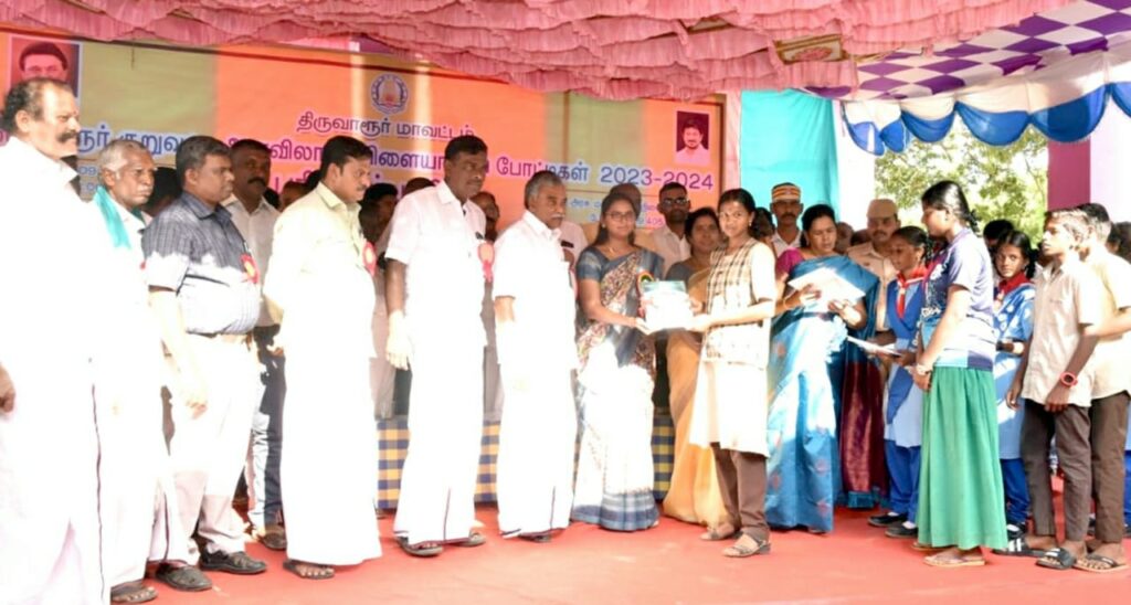 கால்பந்து, ஹாக்கி, வலைபந்து, கைபந்து, கோ-கோ, கபடி, துரோபந்து, ஹேண்ட்பந்து, பால் பேட்மிட்டன், டேபில் டென்னிஸ், கேரம், டென்னிஸ் தடகளம் ஆகிய விளையாட்டுகளில் குறுவட்ட அளவில் வெற்றி பெற்ற மாணவ, மாணவியர்களுக்கு மாவட்ட ஆட்சியர் தி.சாருஸ்ரீ பரிசுகளை வழங்கினார்