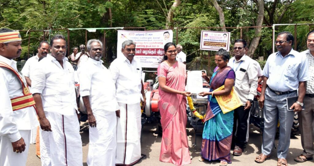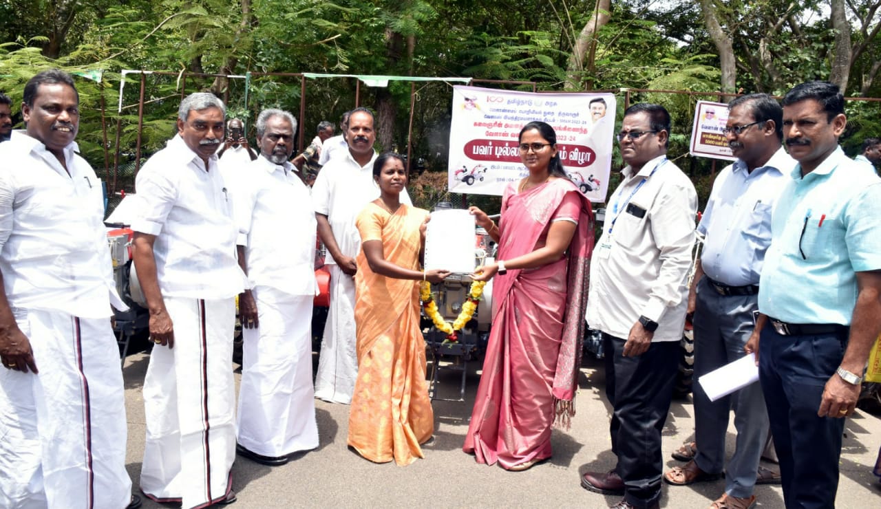 தமிழக முதலமைச்சர் காணொளி காட்சி வாயிலாக வேளாண்மை மற்றும் உழவர் நலத்துறையின் சார்பில் குறைந்த அளவு பரப்பில் வேளாண்மையில் ஈடுபடும் விவசாயிகள் சிறிய வளை வேளாண் இயந்திரங்களை கொண்டு உழவுப்பணிகள் மற்றும் இதர வேளாண் பணிகளை மேற்கொள்ள ஏதுவாக 3907 விவசாயிகளுக்கு ரூ.35 கோடி ரூபாய் மதிப்பிலான பவர்டில்லர்கள் மற்றும் விசை களையெடுப்பான் கருவிகளை வழங்கி தொடங்கி வைத்துள்ளார்கள்