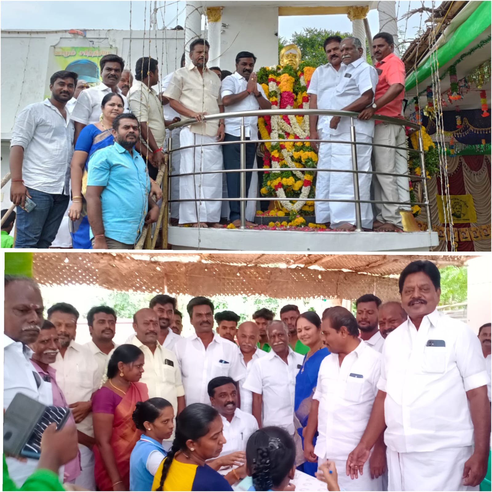 அவருடன் ஒன்றிய செயலாளர்கள் தன்ராஜ், பரந்தாமன், பொதுக்குழு உறுப்பினர் முத்தையன், ஒன்றிய அவைத் தலைவர் நடராஜன், நகரச் செயலாளர் ரகுபதி, பேரூராட்சி தலைவர் ரேணுகாஈஸ்வரி கோவிந்தராஜ், பேரூராட்சி துணைத் தலைவர் சுவாமிநாதன், யூனியன் துணை சேர்மன் சங்கீதா மணிமாறன் ஊராட்சி மன்ற தலைவர் செந்தில்குமார், ஒன்றிய பொருளாளர் சுந்தர், மாவட்ட மாணவர் அணி அமைப்பாளர் ஆதிசங்கர், விளையாட்டு மேம்பாட்டு அணி மாவட்ட துணை அமைப்பாளர் பிரதாப், ஒன்றிய இளைஞரணி அமைப்பாளர் சந்தன கருப்பு, தகவல் தொழில்நுட்ப அணி அமைப்பாளர் தவசதீஷ், கோட்டைமேடு ராஜாஜி, ஆதனூர்முருகன்,மற்றும் பொறியாளர் அணி ராகுல், வலசை கார்த்திக்ராயர், உள்ளிட்ட பலர் கலந்து கொண்டனர்.