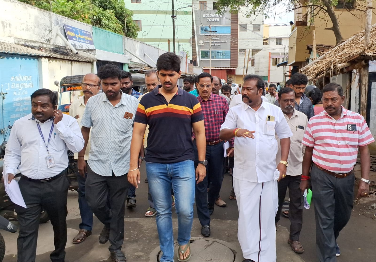 உடன் மத்திய மண்டலம் உதவி ஆணையாளர் மகேஷ் கணகராஜ், மண்டல சுகாதார அலுவலர் குணசேகரன், உதவி பொறியாளர் விமல் ராஜ் சுகாதார ஆய்வாளர் தனபால் மற்றும் பகுதி 2துணை செயலாளர் என்.ஜெ.முருகேசன் கழக நிர்வாகிகள் உடன் இருந்தனர்.