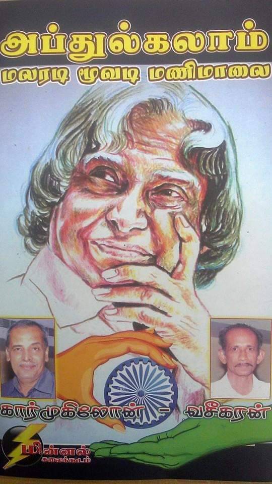 மாமனிதர் அப்துல் கலாம் அவர்களுக்கு பலரும் பலவிதமாக அஞ்சலி செலுத்தி வருகின்றனர். இவர்கள் மலரடி மூவடி மணிமாலை தொகுத்து வழங்கி உள்ளனர்.