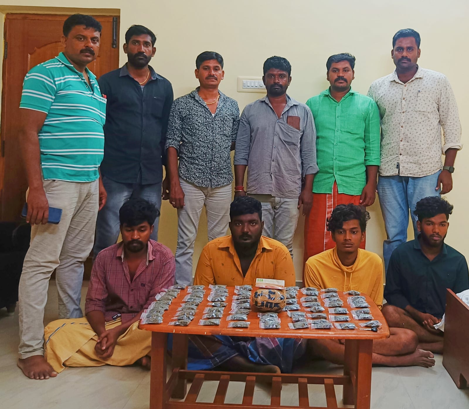 (வயது -25) ,கட்டை என்கிற கதிர்வேல் (வயது -22) ,ஜம்புகேஸ்வரர் (வயது – 22)ஆகியோரை சோதனை செய்ததில் அவர்களிடமிருந்துசுமார் 1 லட்சம் ரூபாய் மதிப்பிலான 1 கிலோ 200 கிராம் எடை கொண்ட அரசால் தடை செய்யப்பட்ட கஞ்சா வைத்திருந்ததும் கண்டுபிடிக்கப்பட்டது.