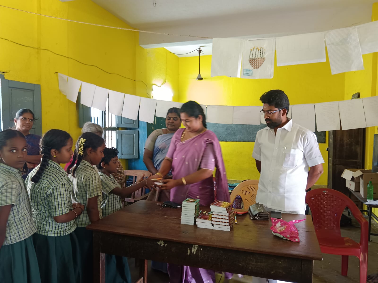 இந்நிகழ்ச்சிக்கு அதிமுக செயலாளர் முனைவர் அசோக்குமார் தலைமை தாங்கினார் பேரூர் கவுன்சிலர் சூரியா அசோக்குமார் மாணவர்களுக்கு பேனா திருகுறள் மற்றும். தமிழ் அகராதி புத்தகங்களை வழங்கினார்.
