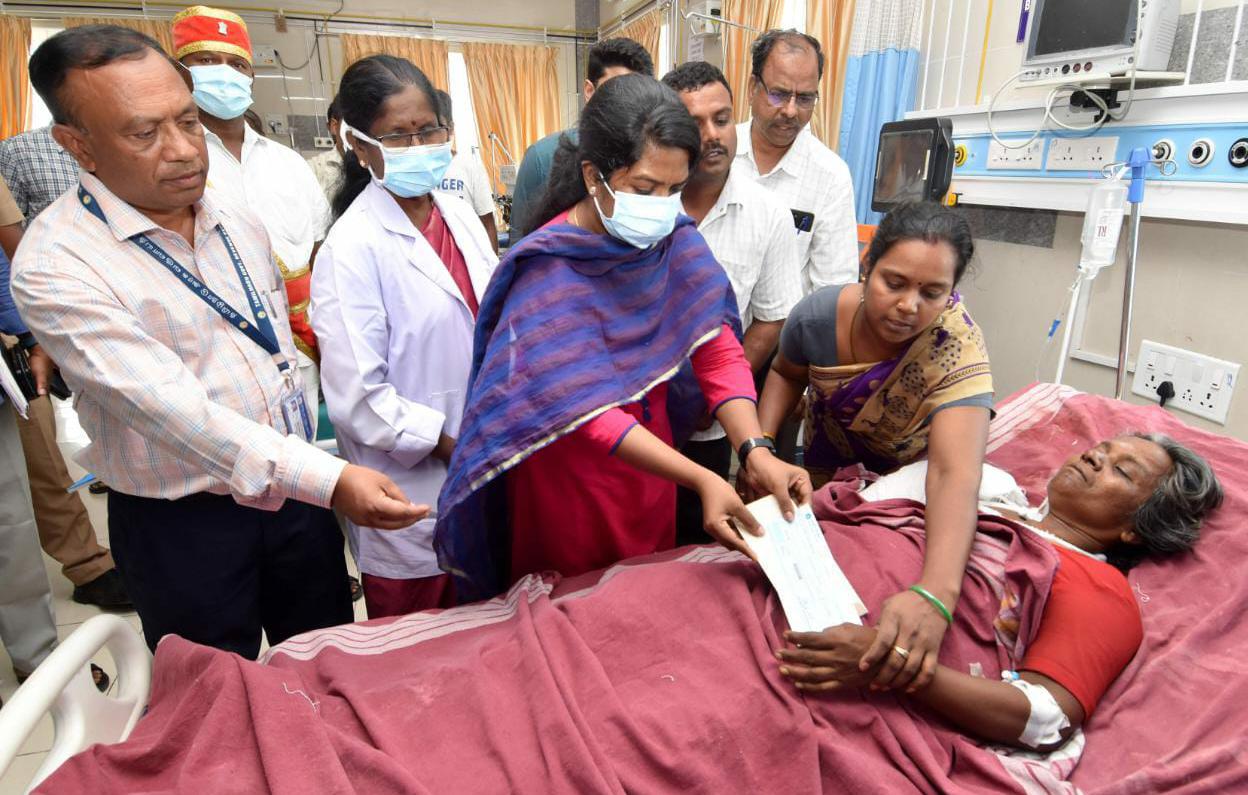 கிருஷ்ணகிரி அரசு மருத்துவக் கல்லூரி மருத்துவமனையில், திருப்பத்தூர் மாவட்டம், நாட்றம்பள்ளி அருகே இன்று அதிகாலை நடைபெற்ற சாலை விபத்தில் காயமடைந்து மருத்துவச்சிகிச்சை பெற்று வரும் 9 நபர்களை மாவட்ட ஆட்சித்தலைவர் .கே.எம்.சரயு நேரில் சந்தித்து ஆறுதல் கூறி, முதலமைச்சரின் பொது நிவாரண நிதியிலிருந்து, தலா ரூ.50 ஆயிரம் வீதம் மொத்தம் ரூ.4 இலட்சத்து 50 ஆயிரத்திற்கான காசோலைகளை வழங்கினார். உடன் அரசு மருத்துவக்கல்லூரி முதல்வர் மரு.பூவதி, மருத்துவமனை கண்காணிப்பாளர் மரு.சந்திரசேகர், வேலூர் மாவட்ட ஆட்சியரின் நேர்முக உதவியாளர் (நிலம்) .ஏ.அப்துல்முனீர் உள்ளிட்ட பலர் உள்ளனர்.