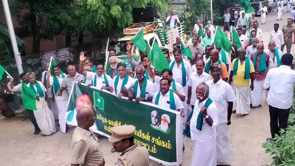 காவிரியில் தமிழகத்திற்கு உரிய தண்ணீரை பெற்று தர வலியுறுத்தியும் தமிழக அரசு ராசி மணலில் புதிய தடுப்பணை அமைக்க கோரியும் கர்நாடக அரசு மேகதாதுவில் அணை கட்டுவதற்கு எதிர்ப்பு தெரிவித்தும் கண்டன கோஷங்களை எழுப்பினர் மேலும் கருகிப்போன குருவை சாகுபடி மற்றும் சம்பா சாகுபடிகளுக்கு உரிய தண்ணீரை பெற்று தர நடவடிக்கை எடுக்காத மத்திய மாநில அரசு மற்றும் கர்நாடக அரசை கண்டித்து கண்டன கோஷங்களை எழுப்பி ஆர்ப்பாட்டத்தில் ஈடுபட்டனர்