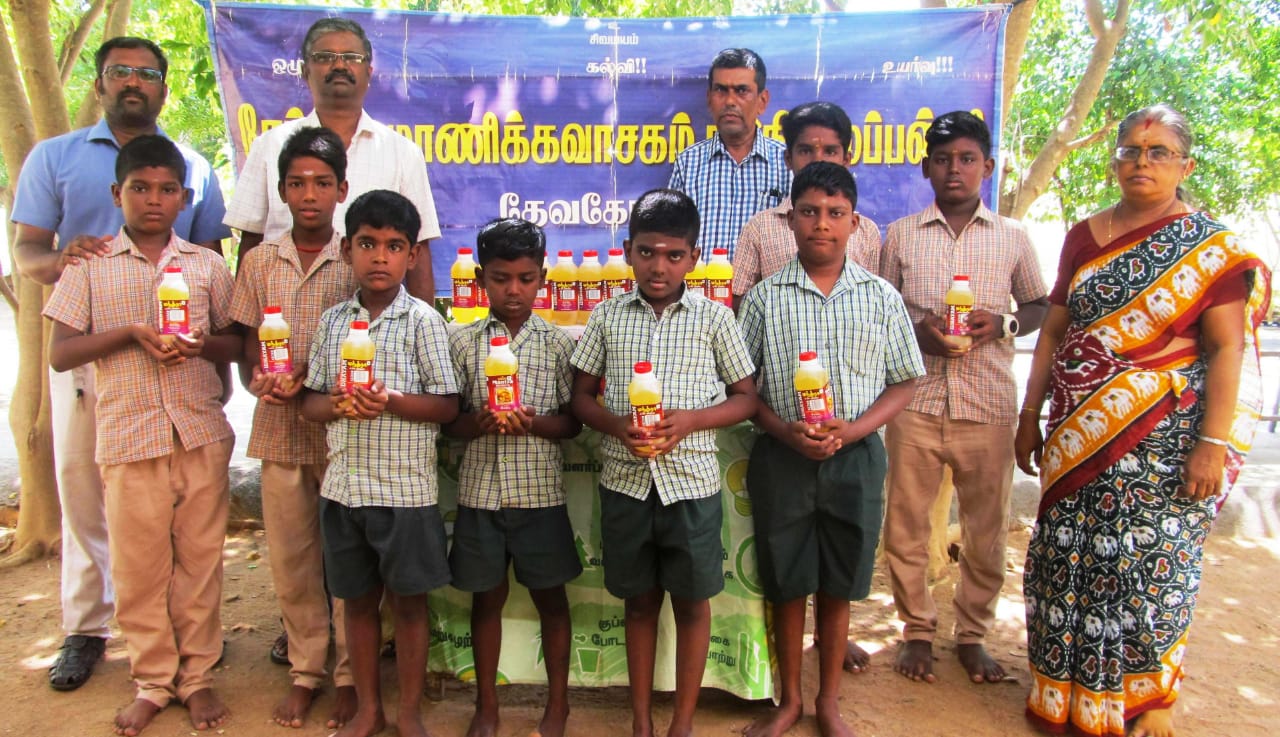தேவகோட்டை – சிவகங்கை மாவட்டம் தேவகோட்டை சேர்மன் மாணிக்க வாசகம் நடுநிலைப் பள்ளியில் திருக்குறள் கூறிய மாணவர்களை பாராட்டி ரூபாய் 3500 மதிப்பிலான கடலை எண்ணெயினை பரிசாக இதயம் நிறுவனம் பள்ளி தேடி வந்து வழங்கி பாராட்டியது.