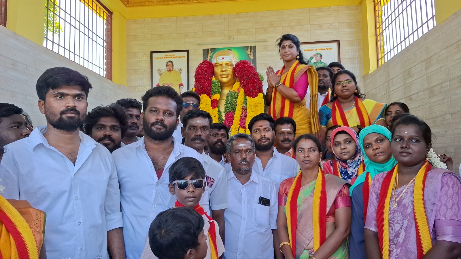 நிகழ்ச்சியில் தமிழக வெற்றிக் கழகத்தைச் சார்ந்த கௌதம் பாண்டியன் அருண்குமார், சிவகாமி முருகன், வழக்கறிஞர். நிர்மல்சிங், மனோ பாண்டியன், வாசுதேவன் நிர்வாகிகள், மகளிர்கள் உள்பட பலர் கலந்து கொண்டு மரியாதை செய்தனா்.