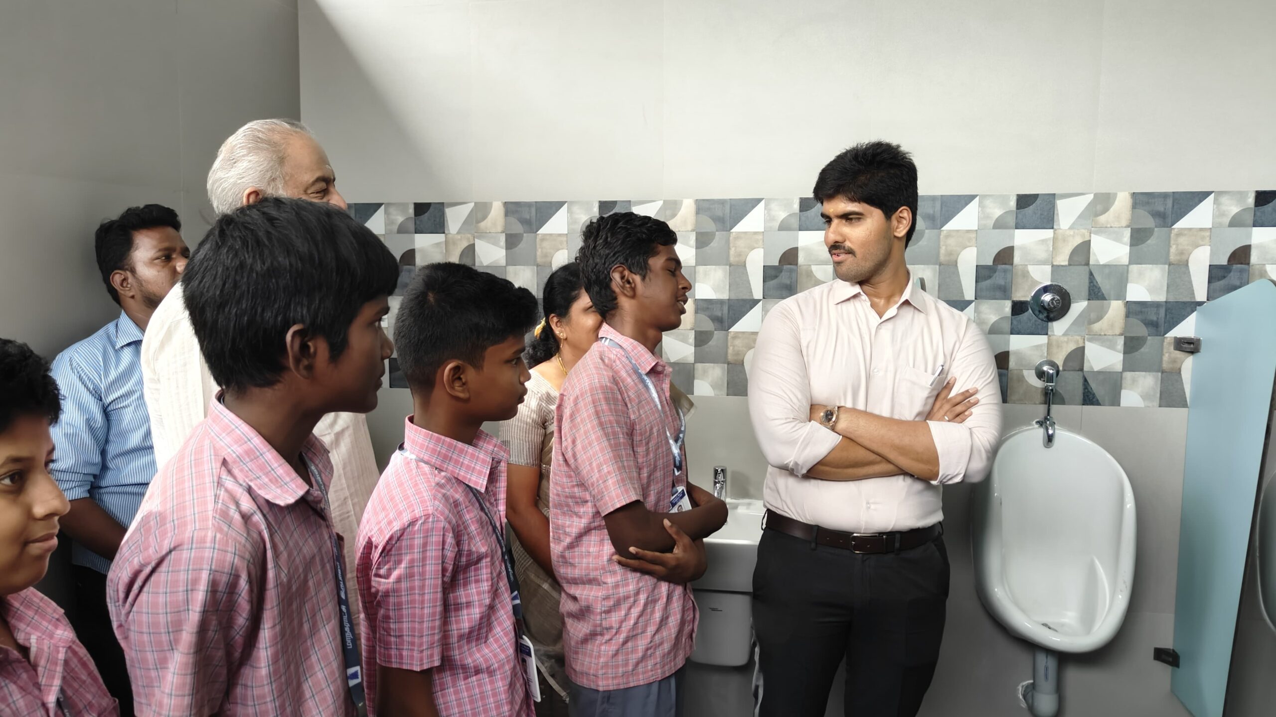 கோவை ஸ்ரீகிருஷ்ணா ஸ்வீட்ஸ் நிறுவனம் சார்பில் ஆர்.எஸ்.புரம் மாநகராட்சிப் பள்ளியில் அமைக்கப்பட்டுள்ள புதிய நவீன கழிப்பறைகள் செப். 21-ம் தேதி (வியாழக்கிழமை) மாணவர்கள் பயன்பாட்டுக்காக திறந்துவைக்கப்பட்டது.