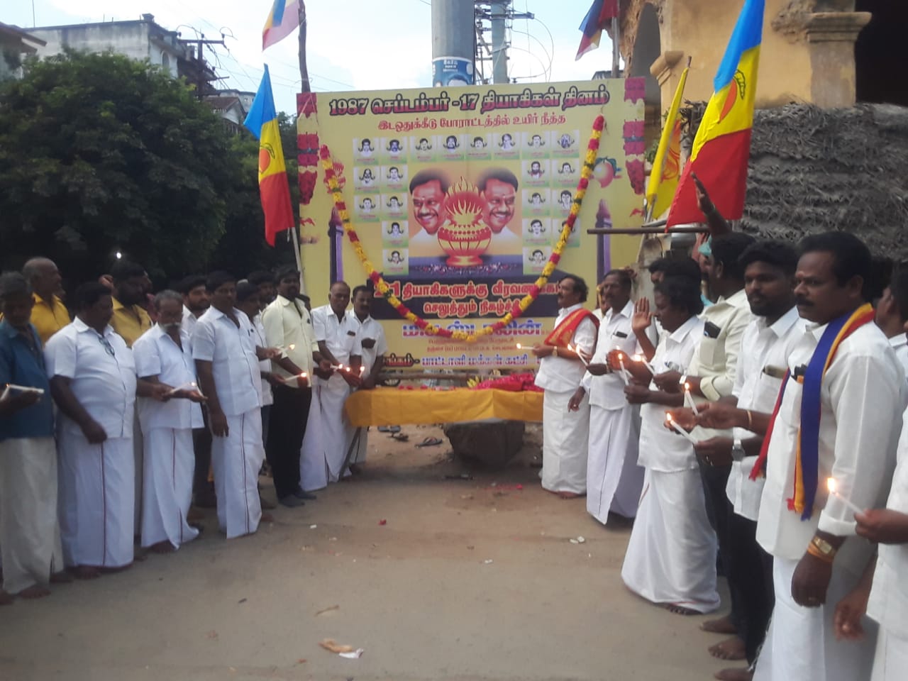 நிகழ்ச்சிக்கு பாட்டாளி மக்கள் கட்சியின் வடக்கு மாவட்ட செயலாளர் ம.க.ஸ்டாலின் தலைமையில் வன்னியர் சங்க மாவட்ட செயலாளர் ராம்குமார்,வன்னியர் சங்க மாவட்ட அமைப்பு செயலாளர் வாசுதேவன்,மாவட்ட துணை செயலாளர் அழகேசன்,ஒன்றிய செயலாளர் அறிவழகன்,ஒன்றிய தலைவர் மனோகர்,நகர செயலாளர் சுதந்திரராஜன்,நகர தலைவர் ராமகிரஷ்ணன்,பா.ம.க.முன்னாள் மாவட்ட செயலாளர் தனவந்தராஜன் மற்றும் நிர்வாகிகள், தொண்டர்கள் உள்ளிட்ட திரளானோர் கலந்து கொண்டு உயிரிழந்த தியாகிகளின் திருவுருவ படத்திற்கு மலர் தூவியும்,கைகளில் மெழுகுவர்த்தி ஏந்தியும்,முழக்கமிட்டு வீரவணக்கம் செய்து அஞ்சலி செலுத்தினர்.