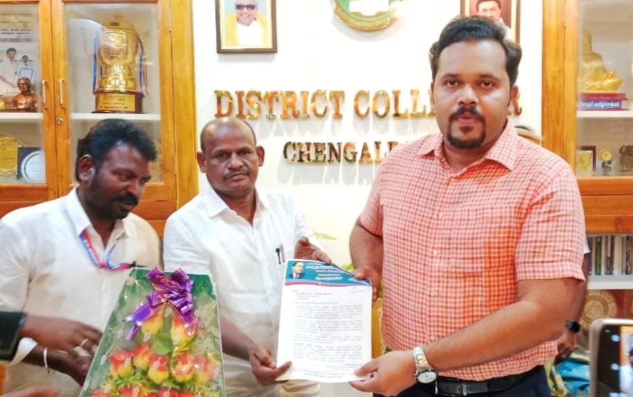 விடுதலை சிறுத்தைகள் கட்சியின் சார்பில் செங்கல்பட்டு மாவட்ட ஆட்சியரிடம் கோரிக்கை மனு வழங்கினர்.