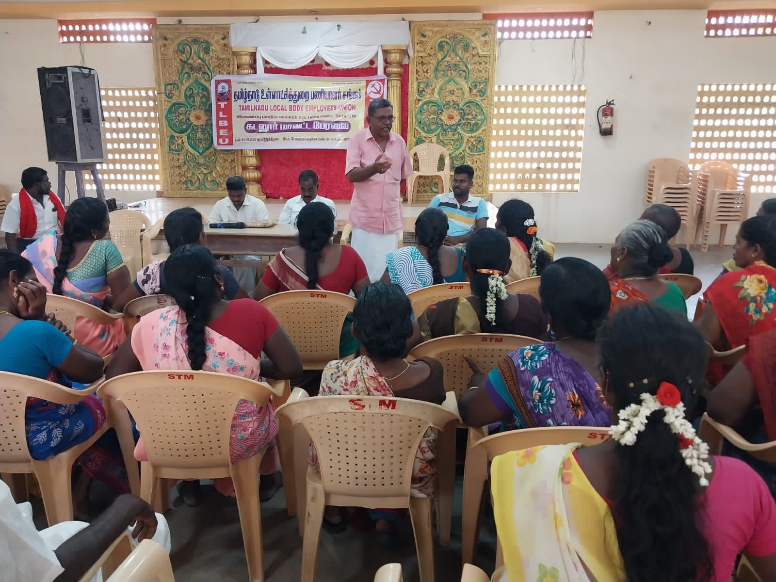 சிறப்பு அழைப்பாளராக தமிழ்நாடு உள்ளாட்சித் துறை பணியாளர் சங்கத்தின் மாநில தலைவர் அறவாழி மாநில பொருளாளர் ஜோதி கலந்து கொண்டு தமிழ்நாடு உள்ளாட்சித் துறை பணியாளர் சங்கத்தின் பற்றியும் உறுப்பினர்கள் சேர்ப்பது பற்றியும் தமிழ்நாடு முழுவதும் உள்ள தூய்மை பணியாளர்களின் நீண்ட கால கோரிக்கை களுக்காக போராடுவது பற்றி விளக்கிப் பேசினார்