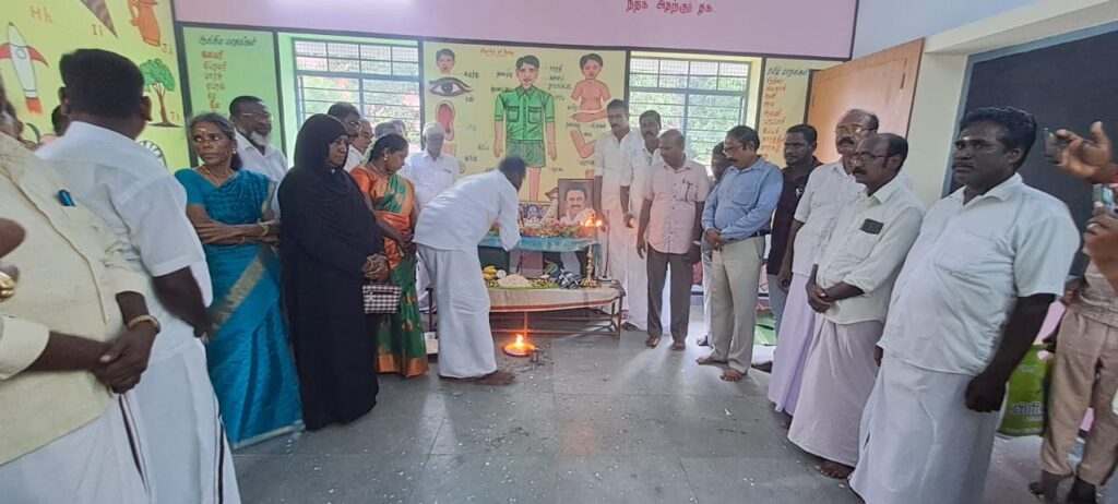 அதனைத் தொடர்ந்து பள்ளியில் நடைபெற்ற நிகழ்வில் பள்ளி தலைமை ஆசிரியர் ராஜா மற்றும் ஆசிரியர்கள் ஊராட்சி மன்ற தலைவர் ஜூனைதா பேகம் கமாலுதீன், திமுக மாவட்ட விவசாய அணி அமைப்பாளர் முருகன் ஆகியோர் பங்கேற்று குத்துவிளக்கு ஏற்றி வைத்து மாணவ மாணவிகளுக்கு இனிப்புகளை வழங்கினர் இந்நிகழ்ச்சியில் பள்ளி மாணவ,மாணவிகள் பெற்றோர்கள் கலந்து கொண்டனர்