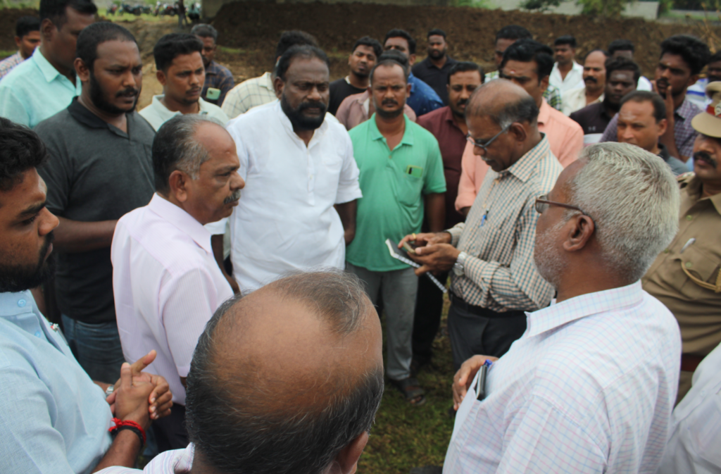 புதுச்சேரி பாகூர் தொகுதிக்குட்பட்ட காட்டுக்குப்பம் தாங்கள் ஏரியில் தனியார் நிறுவன பங்களிப்புடன் ரூ.5 லட்சம் மதிப்பீட்டில் தூர் வாரும் பணி நடைபெற்று வருகிறது. இந்நிலையில் தூர்வாரப்படும் களிமண்கள் கொள்ளையடிக்கப்பட்டு வருவதாகவும் ஏரியில் உள்ள மண்ணை எடுத்து கரையினை மேம்படுத்தாமல் ஏரியில் வெட்டப்படும் மண் தனியார் நிறுவனத்திற்கு விற்கப்படுவதாகவும் இப்பகுதி மக்களால் குற்றச்சாட்டு எழுந்துள்ளது. இதேபோல் சில தினங்களுக்கு முன்பு பாகூர் ஏரியில் அரசு அனுமதி இன்றி ஜே சி பி இயந்திரம் மூலம் மண் எடுக்கப்பட்டு லாரிகளில் சட்டவிரோதமாக எடுத்துச் செல்லப்பட்டு தனியாருக்கு சொந்தமான இடங்களில் லோடு ஒன்றுக்கு ரூ.4ஆயிரம் வீதம் பணம் பெற்று அப்பகுதிகளில் கொட்டப்பட்டு வருவதாகவும் இதற்கு அரசு துறை அதிகாரிகள் உடந்தையாக இருப்பதாகவும் குறை கூறியுள்ளனர். இதன் மீது உடனடியாக சட்டரீதியான நடவடிக்கைகள் எடுக்க வலியுறுத்தியும் இதுவரை எந்த நடவடிக்கையும் இல்லை என்று கூறி முன்னாள் சட்டமன்ற உறுப்பினர் தனவேலு தலைமையில் தனது ஆதரவாளர்கள் மற்றும் என்ஆர் காங்கிரசார் காட்டுக்குப்பம் தாங்கள் ஏரிக்கரை பகுதிக்குச் சென்று அதிகாரிகளை முற்றுகையிட்டுனர். ஏரியில் மண் கொள்ளையில் ஈடுபட்ட ஜேசிபி இயந்திரங்களை பறிமுதல் செய்து உடனடி நடவடிக்கைகள் மேற்கொள்ளப்பட வேண்டுமென பொதுப்பணித்துறை மற்றும் காவல் துறையில் புகார் அளிக்கப்பட்டுள்ளது. ஆளும் கட்சியினரே மண் கொள்ளை போவதாக குற்றம் சாட்டி போராட்டத்தில் ஈடுபட்டதால் அப்பகுதியில் சிறிது நேரம் பரபரப்பு ஏற்பட்டது.