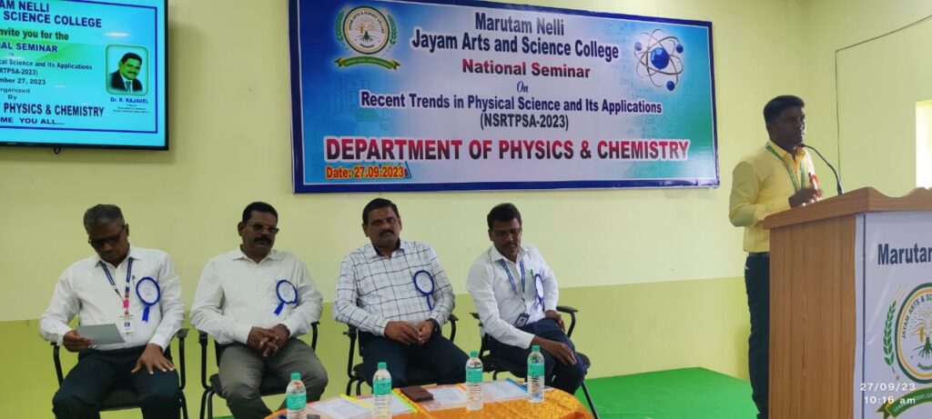 ஜெயம் கலை மற்றும் அறிவியல் கல்லூரியின் முதல்வர் முனைவர் சி.பரஞ்சோதி முன்னிலை வகித்தார் வேதியியல் துறையின் உதவிப் பேராசிரியர் சு.ரகுபதி நோக்கவுரை வழங்கினார்.