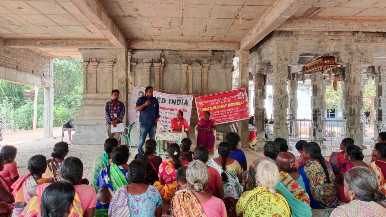 தஞ்சாவூர் மாவட்டம் திருச்சி பிஷப் ஹீபர் கல்லூரியும் தஞ்சாவூர் செட் இன்டியா சமூகசேவை நிறுவனமும் இணைந்து நடத்தும் பெண்கள் அதிகாரமளித்தல் என்ற தலைப்பில் விழிப்புணர்வு நிகழ்ச்சியை வேங்கரையன் குடிகாடு ஸ்ரீ வில்லாயி அம்மன் கோயிலில் செவ்வாய்க்கிழமை நடைபெற்றது