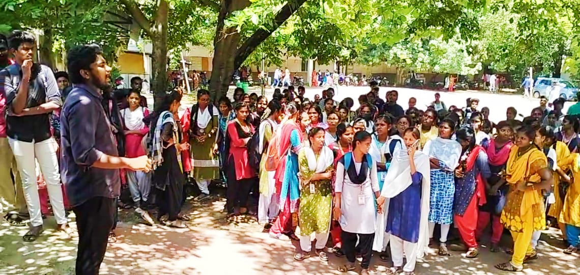 செங்கல்பட்டில் அமைந்துள்ள ராஜேஸ்வரி வேதாசலம் அரசு கலைக்கல்லூரியில் அடிப்படை வசதிகளை சரி செய்திட கோரி இந்திய மாணவர் சங்கத்தின் கிளை செயலாளர் தோழர் சத்யா தலைமையில் போராட்டம் நடைபெற்றது,