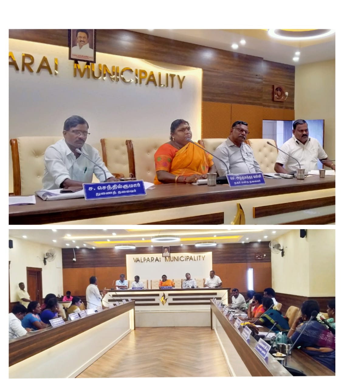 கோவை மாவட்டம் வால்பாறை நகராட்சியில் உள்ள நகர் மன்ற அரங்கில் நகர்மன்ற அவசரக்கூட்டம் நகர் மன்ற தலைவர் அழகு சுந்தர வள்ளி செல்வம் தலைமையில் நகராட்சி ஆணையாளர் பெர்பெற்றி டெரன்ஸ் லியோன், நகர் மன்ற துணைத்தலைவர் த.ம.ச.செந்தில்குமார் ஆகியோர் முன்னிலையில் நடைபெற்றது