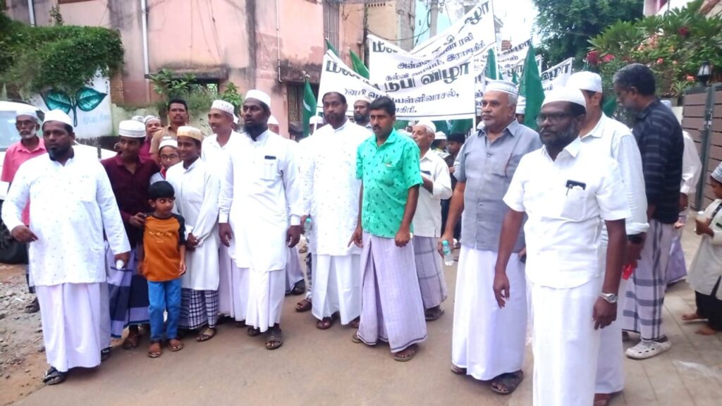 நிகழ்ச்சியில் பக்கீர்மார்களின் மேளதாள இசைகள் முழங்க, பெரியவர்கள் முதல் குழந்தைகள் வரை கையில் பதாகைகள் ஏந்தி முக்கிய வீதிகளின் வழியாக அங்கு இருந்தவர்கள் நபிகள் நாயகத்தின் புகழ்