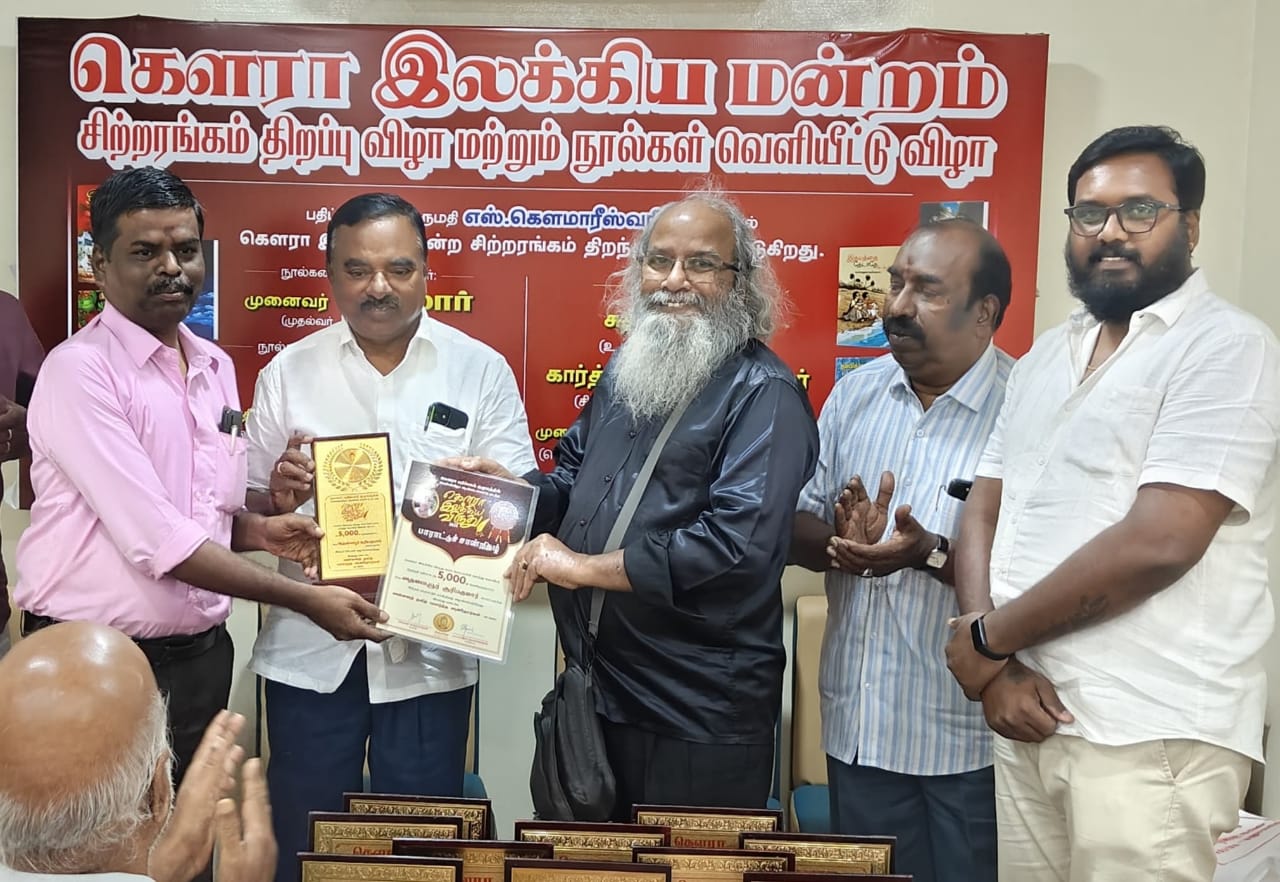 திருச்சியில் கடந்த இருபத்தைந்து ஆண்டுகளாக இயங்கி வரும் எம்.ஜே.பதிப்பகம் ஆண்டுதோறும் சிறந்த இலக்கியப் படைப்புகளை தேர்ந்தெடுத்து விருதுகளை வழங்கி வருகிறது. அந்த வகையில் இந்த ஆண்டு தென்குவளவேலி அரசு உயர்நிலைப்பள்ளி ஆசிரியரும் எழுத்தாளருமான ஆதலையூர் சூரியகுமார் எழுதிய ‘அன்னைத் தமிழ் வளர்த்த ஆழ்வார்கள் நாயன்மார்கள்’ என்ற நூல் விருதுக்கு தேர்ந்தெடுக்கப்பட்டது. திருச்சியில் நடைபெற்ற விழாவில் கௌரா பதிப்பகத்தின் உரிமையாளர் ராஜசேகரன், எம்.ஜே. பதிப்பகம் ஜெய்கணேஷ் ஆகியோர் விருதும் ரூபாய் ஐயாயிரம் ரொக்கப் பரிசும் வழங்கி கௌரவித்தனர்.