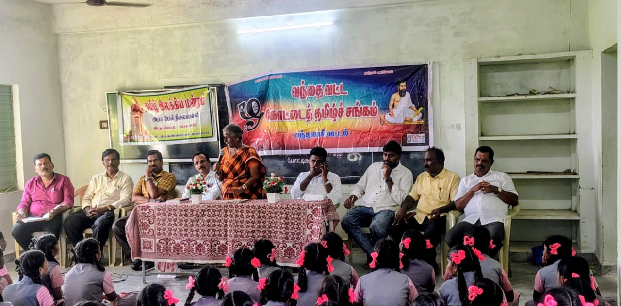 தமிழ் இலக்கிய மன்ற விழாவில் நடைபெற்ற இந்த நிகழ்விற்கு பள்ளி பொறுப்பு தலைமை ஆசிரியர் முனுசாமி தலைமை தாங்கினார். கோட்டை தமிழ்ச்சங்க தலைவர் பீ.ரகமத்துல்லா, துணை தலைவர் பா. சீனிவாசன் ஆகியோர் முன்னிலை வகித்தனர். தமிழாசிரியர் செல்வமணி வரவேற்றார்.