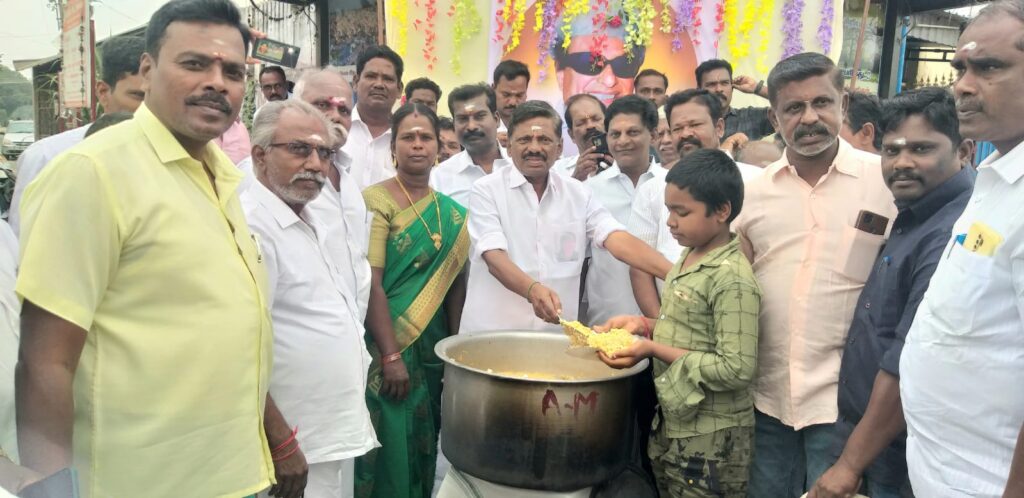 அதனைத்தொடர்ந்து, உள்ளாட்சி பிரதிநிதிகள், அனைத்துப் பிரிவு கட்சி நிர்வாகிகளும் மலர்தூவி மரியாதை செய்தனர். பின்னர் ஒன்றிய செயலாளர் கே.ராமதாஸ் ஏழை, எளிய மக்களுக்கு அன்னதானம் வழங்கினார்.