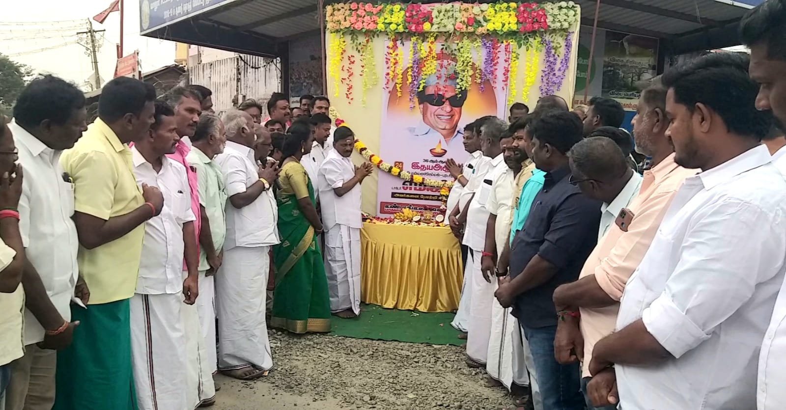 பின்னர் கோண்டூர் கூட்ரோட்டில் வானூர் சட்டமன்ற உறுப்பினர் சக்கரபாணி திறந்துவைத்த பஸ் நிழற்குடை அருகே மலர்களால் அலங்கரித்து வைக்கப்பட்டிருந்த தமிழக முன்னாள் முதல்வர் டாக்டர் எம்.ஜி.ஆர். உருவப்படத்திற்கு கண்டமங்கலம் அதிமுக தெற்கு ஒன்றிய செயலாளர் கே.ராமதாஸ் மலர்தூவி மரியாதை செலுத்தினார்.