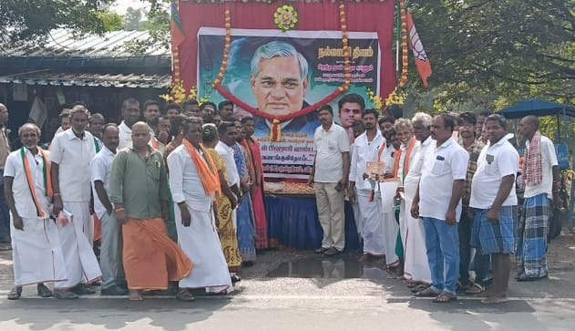 அவரது பிறந்தநாளை நல்லாட்சி தினமாக கட்சியினர் கொண்டாடி வருகின்றனர். அதன் ஒரு பகுதியாக ஒலக்கூர் கூட்டு சலை சந்திப்பில் அலங்கரிக்கப்பட்டிருந்த வாஜ்பாயின் உருவப் படத்திற்கு பாஜக ஒழிக்கூர் ஒன்றிய கிழக்கு மண்டல தலைவரும் ஊராட்சி மன்ற தலைவருமான யுவராஜ் தலைமையில் மலர் தூவி மாலை அணிவித்து மரியாதை செலுத்தப்பட்டது.