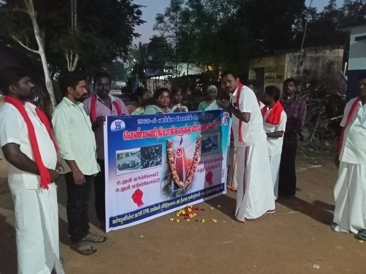 செங்கொடி இயக்கத்திற்கு பின்னால் அணி திரண்ட 44 நாட்டுப்புற ஏழைகளை தீயிட்டு படுகொலை செய்த வெண்மணி தியாகிகளுக்கு 55 ஆம் ஆண்டு நினைவேந்தல் நாள் ஒன்றிய துணை செயலாளர் தலைமையில் நடைபெற்றது.