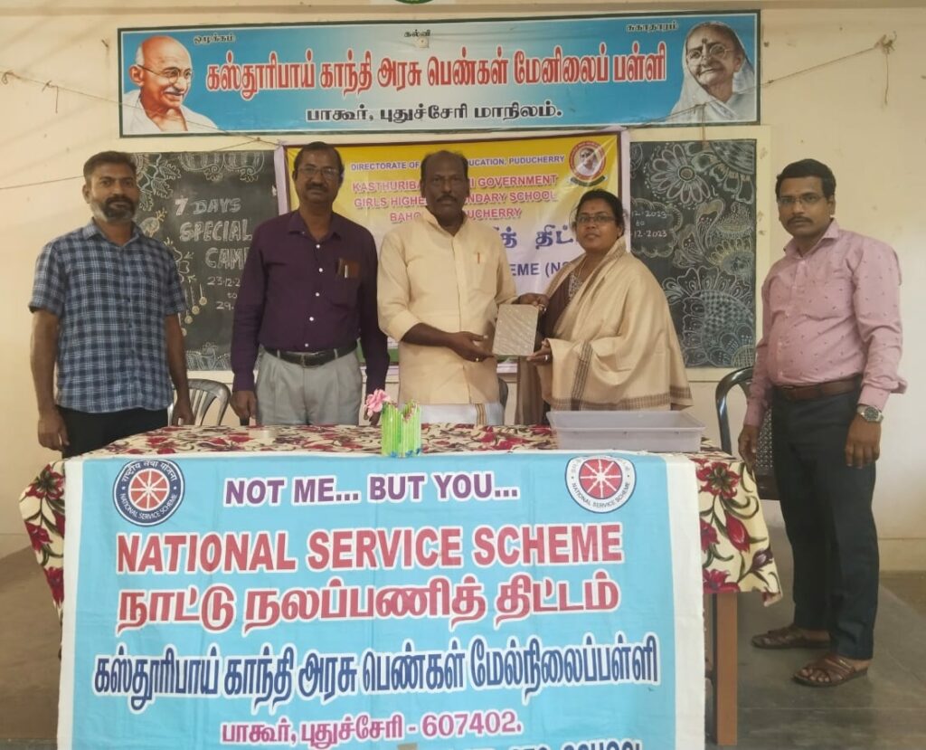 புதுச்சேரி பாகூர் கஸ்தூரிபாய் காந்தி அரசு பெண்கள் மேனிலைப் பள்ளியில் நாட்டு நலப்பணித் திட்ட ஏழு நாள் சிறப்பு முகாம் நடைபெற்றுவருகிறது.
