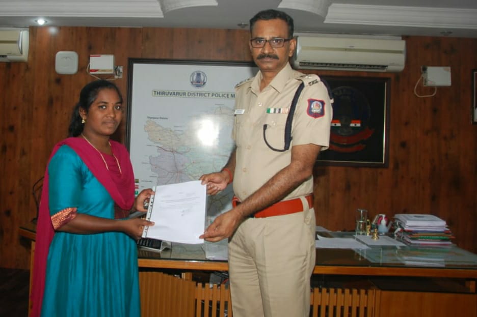 திருவாரூர் மாவட்ட. ஊர் காவல் படைக்கு தேர்வான பெண் பணிநியமன ஆணையை மாவட்ட காவல் கண்காணிப்பாளர் வழங்கினார்