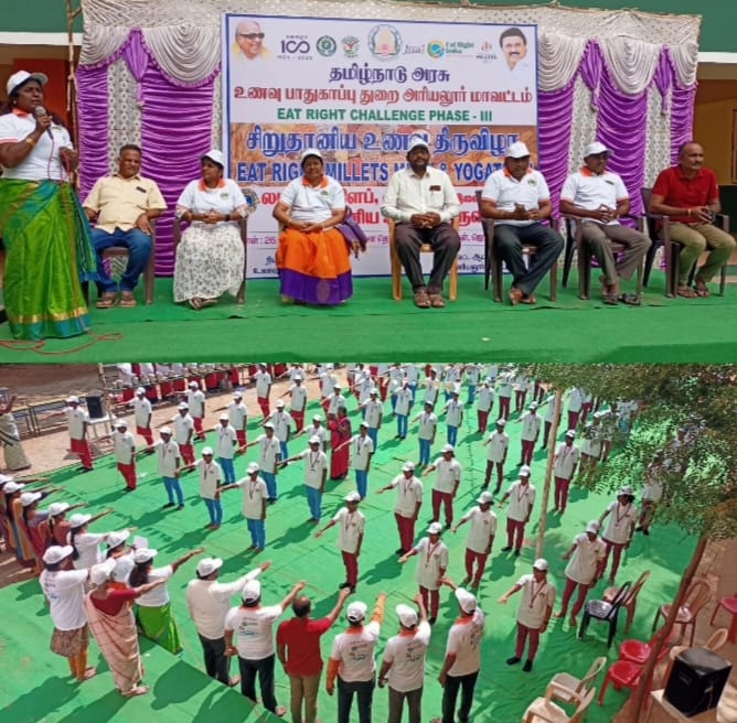 அரியலூர் மாவட்டம் ஜெயங்கொண்டத்தில் தமிழ்நாடு அரசு உணவு பாதுகாப்பு துறை,அன்னை தெரசா மெட்ரிகுலேஷன் பள்ளி மற்றும் ஜெயங்கொண்டம் லயன்ஸ் கிளப் இணைந்து நடத்தும் மாபெரும் சிறுதானிய உணவு திருவிழா மாவட்ட உணவு பாதுகாப்பு துறை நியமன அலுவலர் வரலட்சுமி தலைமையில் நடைபெற்றது.