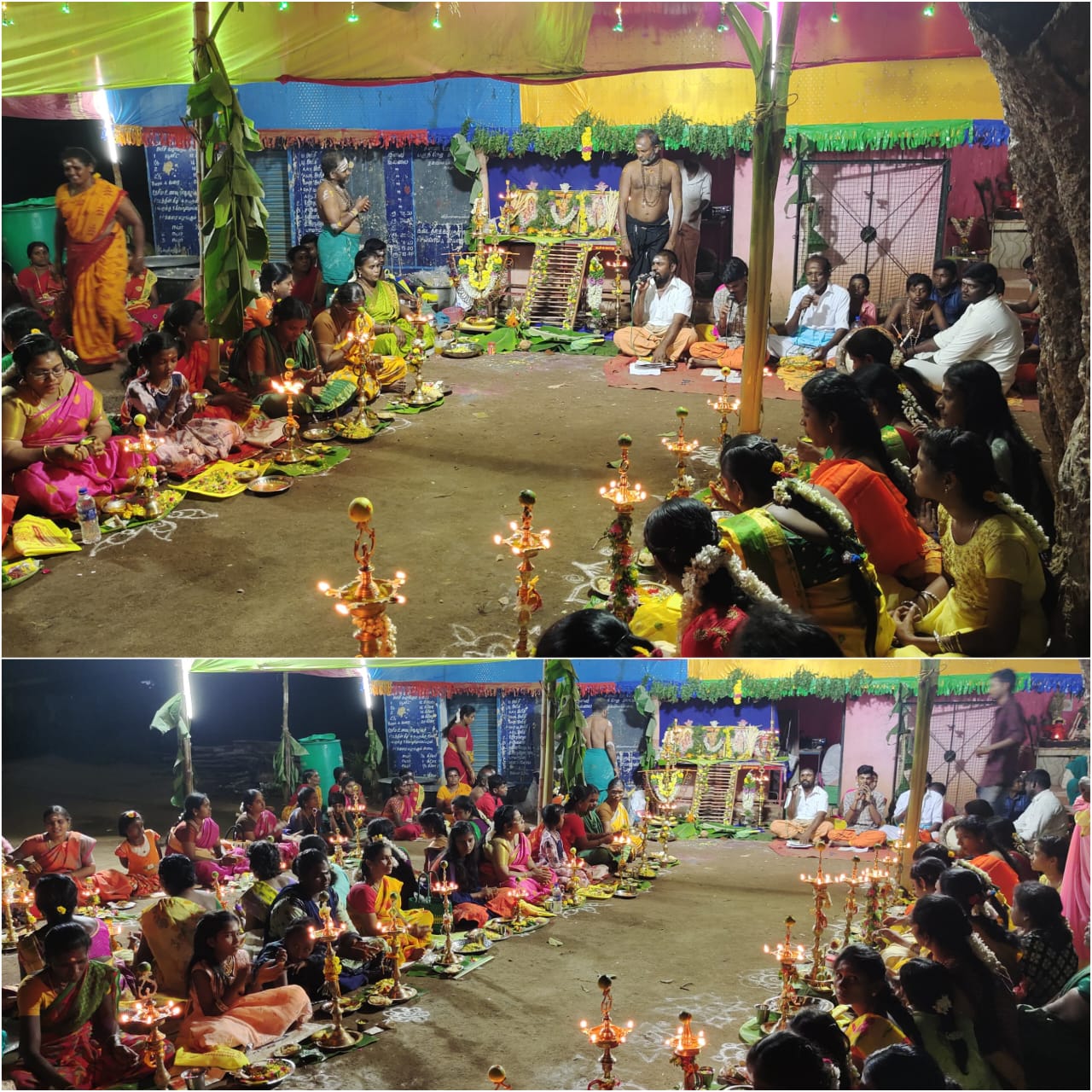 அதனை தொடர்ந்து ஓம் சக்தி மகளிர் வழிபாட்டு குழு சார்பில் திருவிளக்கு பூஜையும் நடைபெற்றது இந்த விளக்கு பூஜையில் கலந்து கொண்ட பெண்களுக்கு பிரசாத பொருட்களும் அன்னதானம் வழங்கப்பட்டது.