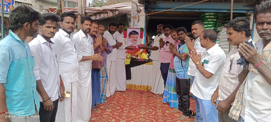 தே.மு.தி.க தலைவரும் முன்னாள் சட்டமன்ற எதிர்கட்சி தலைவரும் நடிகருமான கேப்டன் விஜயகாந்த் அவர்களுக்கு போச்சம்பள்ளி தே.மு.தி.க நிர்வாகிகள் ஊர்வலமாக சென்று அவரது உருவப்படத்திற்கு மாலை அணிவித்து அஞ்சலி செலுத்தினர்