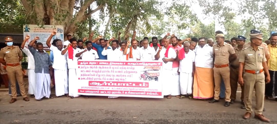 பாபநாசம் அருகே டிராக்டர்களில் ஆன்லைன் மூலம் பதிவு செய்து, மணல் ஏற்றுவதை தடுப்பவர்கள் மீது சட்டப்படி நடவடிக்கை எடுக்க வேண்டி..